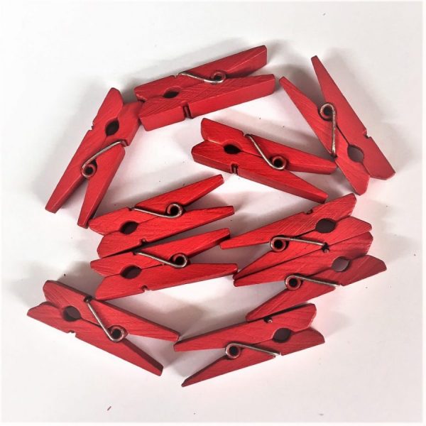 Wooden Mini Pegs 35mm in length 10mm thick – Red Colour
