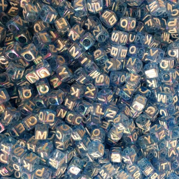 Baby Blue Transparent 7mm Alphabet Cube Beads, Mixed Letters A-Z, Pony Beads