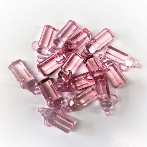 Baby Pink Transparent Baby Bottle Charms, Dummy Clips