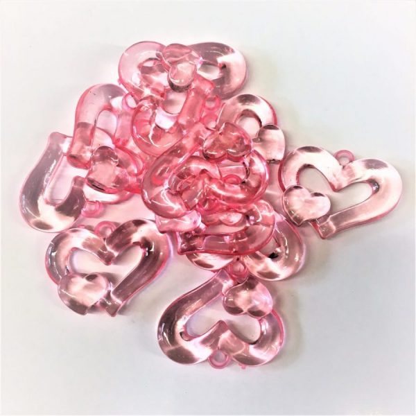 Baby Pink Transparent Love Heart Charms, Dummy Clips