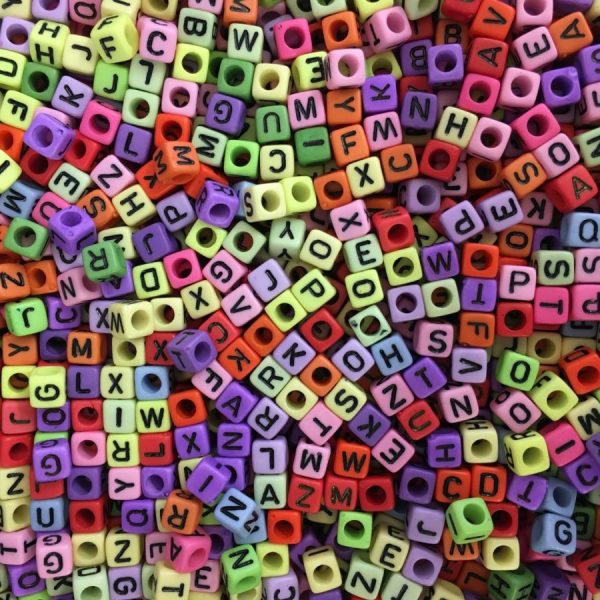 Full Colour 6mm Alphabet Cube Beads, Mixed Letters A-Z, Pony Beads