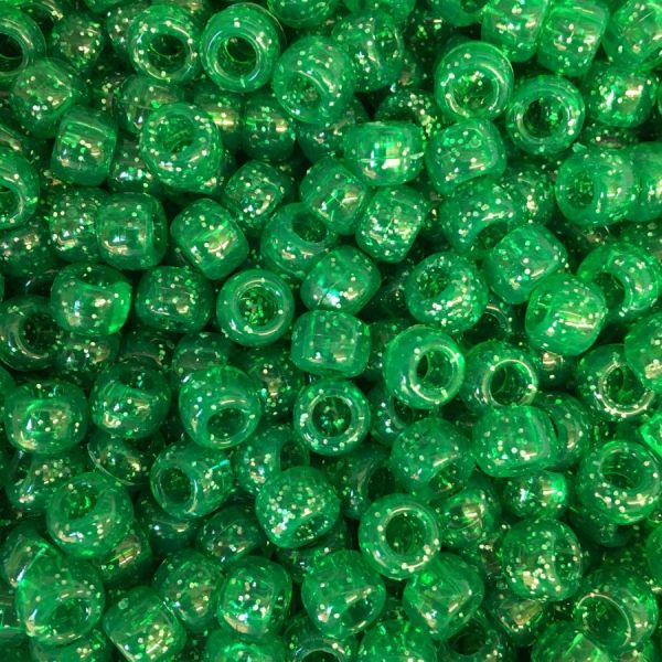 Green Glitter 9x6mm Pony Beads Dummy Clips, Pram Charms