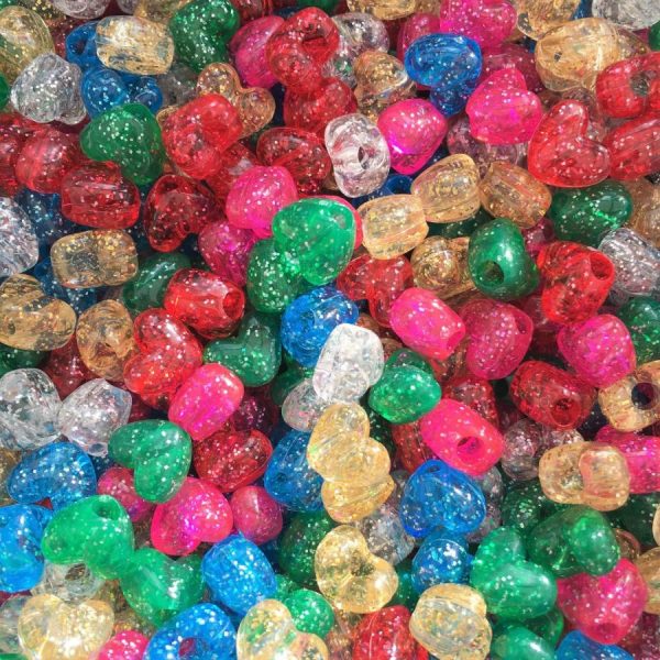 Jelly Sparkle Hearts 9x6mm Pony Beads Dummy Clips, Pram Charms
