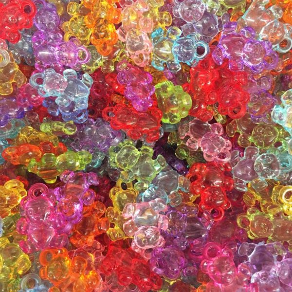 Mixed Bright Colour Transparent Teddy Bear Charms, Dummy Clips