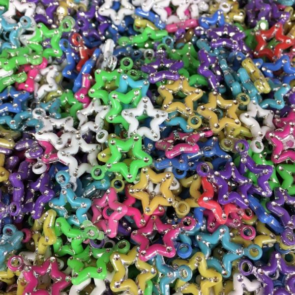 Mixed Colour Jellewed Star Charms, Dummy Clips, Craft Gems