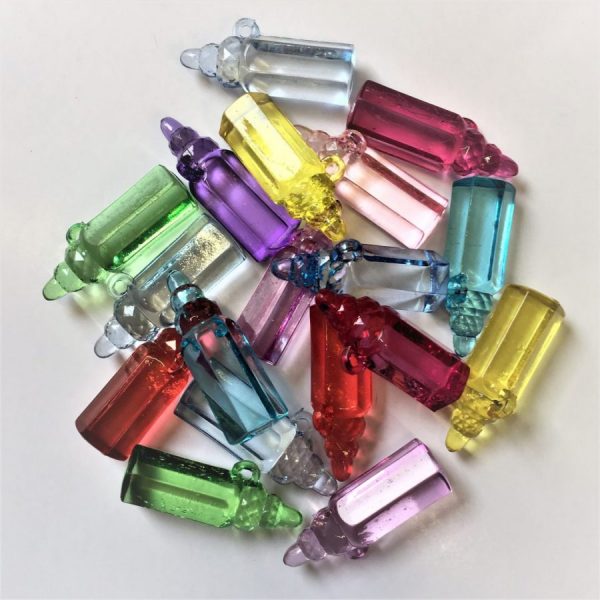Mixed Colour Transparent Baby Bottle Charms, Dummy Clips