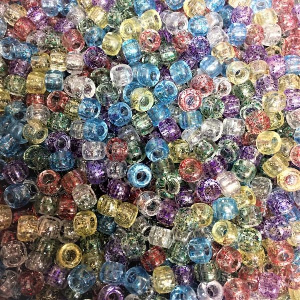 Multi-Glitter Transparent Mix 9mm Pony Beads Dummy Clips, Pram Charms
