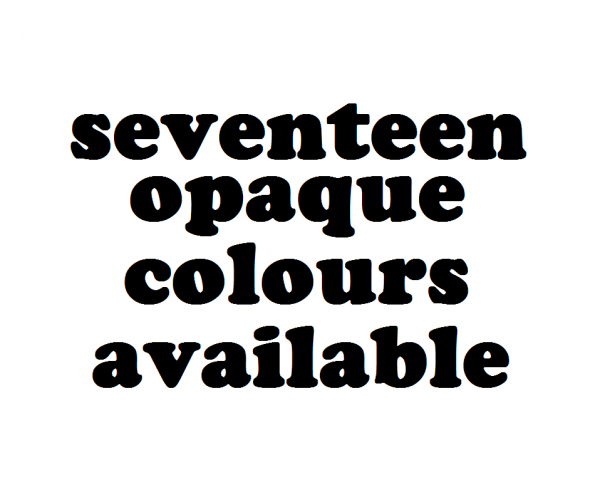 | Opaque Colour | Purple, Baby Pink, Light Green, Baby Blue, Yellow, Denim Blue, Black, Orange, White, Red, Pink, Royal Blue, Lilac, Cream, Silver, Gold, Dark Green |