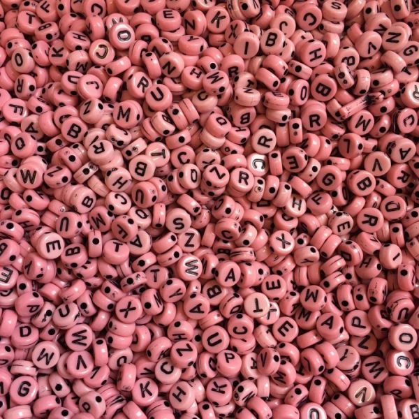 Pink 6mm Alphabet Round Beads, Mixed Letters A-Z, Pony Beads