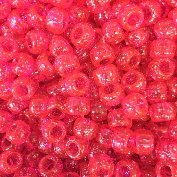 Pink Glitter 9x6mm Pony Beads Dummy Clips, Pram Charms
