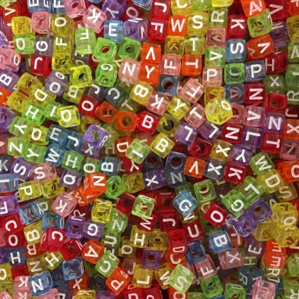 Transparent Coloured 6mm Alphabet Cube Beads, Mixed Letters A-Z, Pony Beads