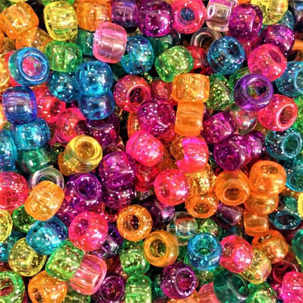 Transparent Glitter Mix 9x6mm Pony Beads Dummy Clips, Pram Charms