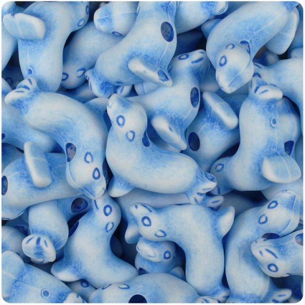 Seal shaped novelty pony beads from the Marine Life series, in a white with blue antique finish. These beads measure 24mm x 21mm, with a 4mm hole in the middle of the beads. Made in the USA and sold in packs of 20 beads.