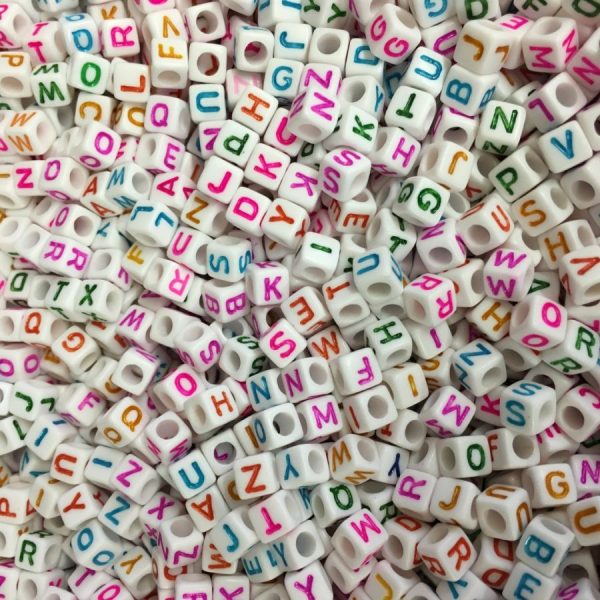 White Coloured 6mm Alphabet Cube Beads, Mixed Letters A-Z, Pony Beads